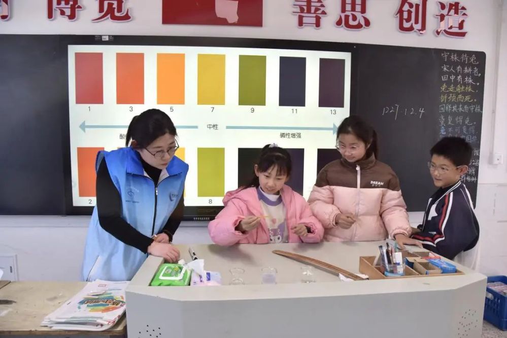 活動(dòng)現(xiàn)場(chǎng),志愿者通過(guò)“理論+實(shí)踐”雙線并行的方式,向?qū)W生們普及水資源知識(shí)。理論環(huán)節(jié)中,志愿者以通俗易懂的語(yǔ)言講解了水資源的稀缺性、日常節(jié)水技巧以及長(zhǎng)江流域水生態(tài)保護(hù)的重要性。實(shí)踐環(huán)節(jié)則設(shè)置“水的酸堿度”小實(shí)驗(yàn),學(xué)生們?cè)谥笇?dǎo)下動(dòng)手操作簡(jiǎn)易酸堿度檢測(cè)小實(shí)驗(yàn),觀察不同酸堿度下試紙的變化,讓同學(xué)們深刻理解健康飲水的重要性。