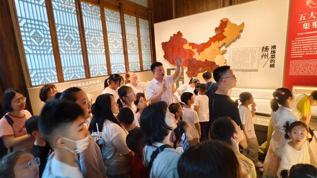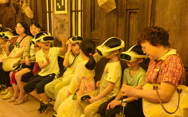 活動(dòng)中,孩子們首先參觀了淮揚(yáng)菜博物館,深入了解淮揚(yáng)菜的歷史文化與精湛技藝。隨后,大家走進(jìn)“唐朝詭事錄”VR劇場,戴上VR眼鏡后,孩子們跟隨劇情線索穿梭于大唐盛景之中,在虛實(shí)交融的沉浸式體驗(yàn)里與古人展開“跨時(shí)空對(duì)話”?;顒?dòng)尾聲,親子家庭相聚對(duì)影小酒館,共同動(dòng)手制作傳統(tǒng)竹編扇,感受手工技藝蘊(yùn)含的匠心之美。