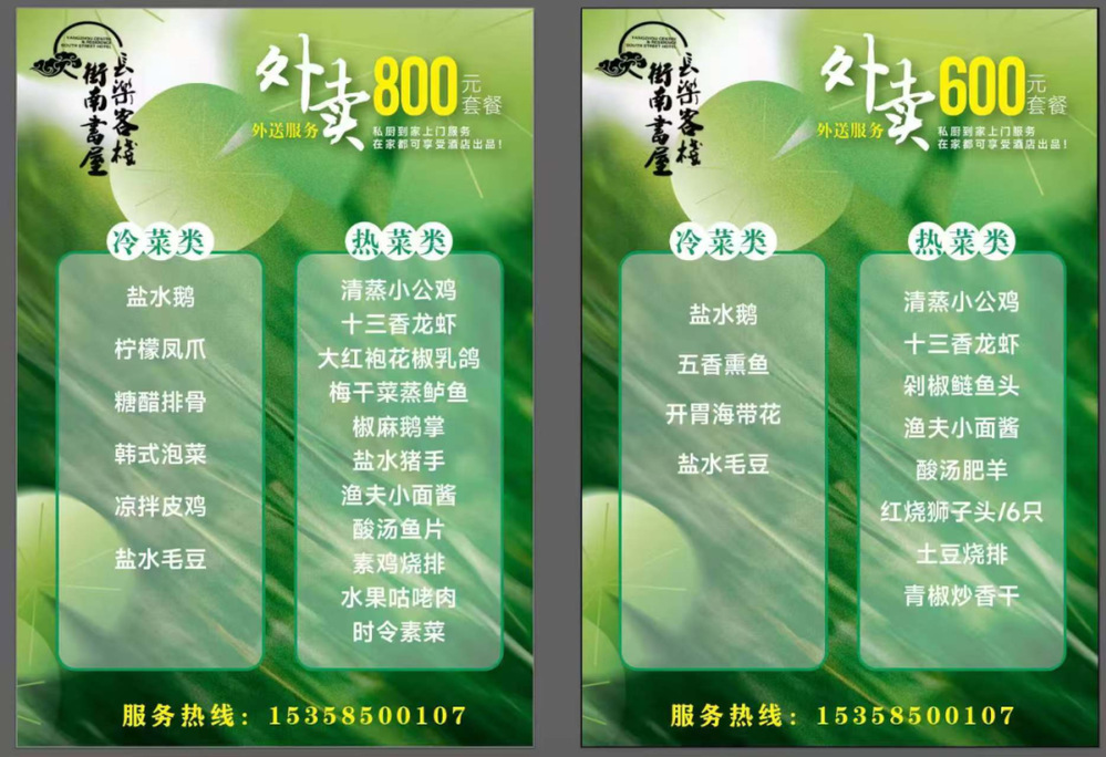 酒店打破傳統(tǒng)用餐場景限制,除了推出門店外賣,還推出了外賣套餐配送和外賣家廚上門的服務(wù)。只需提前撥打預(yù)約電話,酒店隨即閃送上門或由廚師攜食材上門現(xiàn)場烹飪,讓您足不出戶體驗舌尖上的美味,坐擁私宴級體驗。