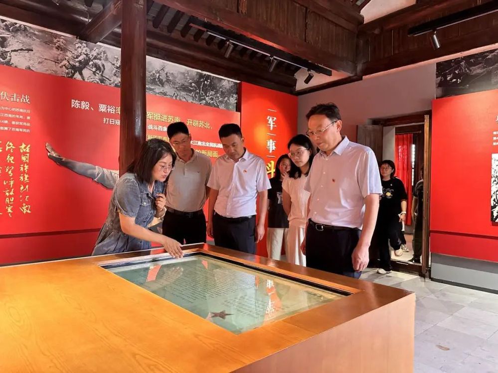步入郭村保衛(wèi)戰(zhàn)紀念館,一幅幅珍貴的歷史圖片、一件件真實的文物展品浮現(xiàn)眼前,聆聽講解員的解說,大家重溫了“夜送情報”“雨中修房屋”等一個個紅色故事,觀看了電影《東進序曲》中的精彩片段,在感嘆革命先輩留下的寶貴精神財富和歷史遺跡的同時,也真切感受到他們頑強拼搏、抗戰(zhàn)到底的崇高革命精神。新四軍蘇北指揮部紀念館內,大量的歷史圖片和珍貴實物生動再現(xiàn)了新四軍挺進蘇北、創(chuàng)建抗日根據(jù)地的光輝歷程,在講解員的引導下,大家駐足于“中央決策”“軍事斗爭”“統(tǒng)戰(zhàn)藝術”等主題展區(qū),詳細了解新四軍如何在復雜局勢下瓦解敵人,為東進黃橋、開辟蘇北抗戰(zhàn)新局面奠定基礎。