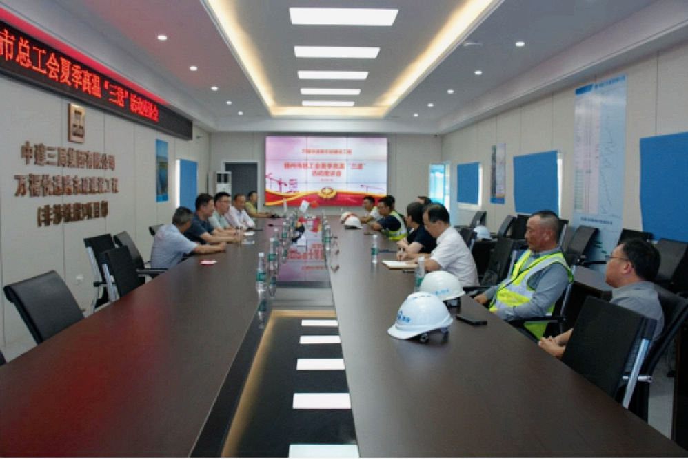 現(xiàn)場(chǎng)慰問(wèn)結(jié)束后,市總工會(huì)還組織開(kāi)展了夏季高溫“三送”活動(dòng)座談會(huì)。會(huì)上,項(xiàng)目部就工程進(jìn)展、安全生產(chǎn)及高溫防護(hù)措施落實(shí)情況等進(jìn)行了詳細(xì)匯報(bào)。孫凌雷在聽(tīng)取匯報(bào)后充分肯定了工程建設(shè)所取得的成績(jī)。他指出,萬(wàn)福快速路東延建設(shè)工程項(xiàng)目是重大民生工程,廣大建設(shè)者們以高度的責(zé)任感、使命感堅(jiān)守崗位,這種奉獻(xiàn)精神令人動(dòng)容。他強(qiáng)調(diào),項(xiàng)目部要加強(qiáng)安全作業(yè)和防暑降溫知識(shí)的宣傳普及,提高施工人員的自我保護(hù)意識(shí)和能力;要嚴(yán)格落實(shí)高溫作業(yè)預(yù)案,科學(xué)調(diào)整作業(yè)時(shí)間,配足防暑降溫設(shè)施,堅(jiān)決守住勞動(dòng)者健康生命線。