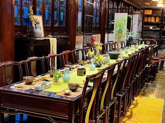 當(dāng)意大利濃縮遇上揚(yáng)州魁龍珠,當(dāng)小麥精釀碰撞綠楊春,東關(guān)街的青石板路上,正流淌著一條無形的文化河。這里沒有刻意的中西結(jié)合,只有歲月沉淀后的自然交融。在長樂客棧,清代鹽商宅院的木構(gòu)梁架下,工業(yè)風(fēng)吧臺與磚雕門樓悄然對話。咖啡師以鹽商故事為靈感調(diào)制東關(guān)特調(diào),拉花時(shí)非遺剪紙的鏤空紋樣在奶泡上流轉(zhuǎn),古琴曲《平沙落雁》的余音里,揚(yáng)州評話的念白與咖啡機(jī)的蒸汽聲交織成獨(dú)特的背景樂。深入客棧竹影婆娑的月洞門,春川茶寮似一卷未展開的揚(yáng)州園林手札,它以春水煎茶,川流載道為魂,將揚(yáng)州二十四景的留白意境,化作三進(jìn)茶空間的起承轉(zhuǎn)合。而轉(zhuǎn)過街巷口的東關(guān)集,漢森熊啤酒屋的木質(zhì)酒桶上,漆器工藝的揚(yáng)州地圖正泛著微光,精釀師以運(yùn)河漕運(yùn)為靈感,釀出東關(guān)碼頭小麥啤——麥芽香中,竟飄著幾分藕粉的清甜。