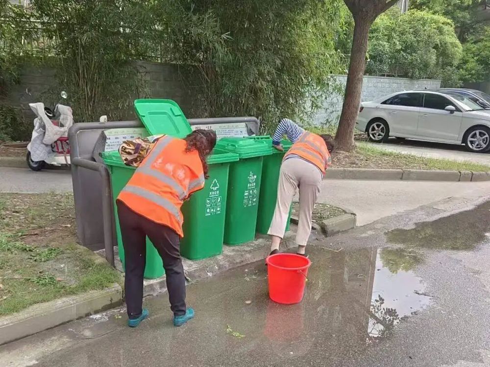 巡查時,陳阿姨發(fā)現(xiàn)佳園垃圾分類站旁有散落的垃圾,立即聯(lián)系清運車。等處理完回到休息室,已是晚上7點。她喝了口水,又拿起手電筒去檢查樓道衛(wèi)生。數(shù)據(jù)顯示,當(dāng)日保潔團(tuán)隊清運垃圾2.3噸,擦拭公共設(shè)施137處,清理衛(wèi)生死角9處。