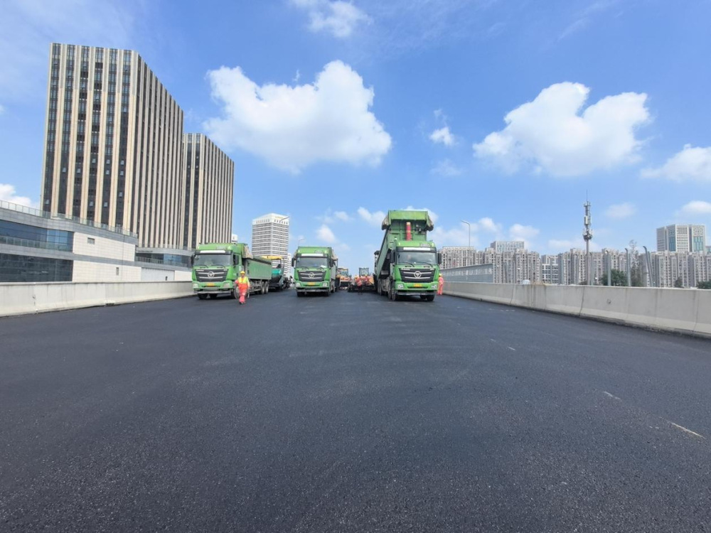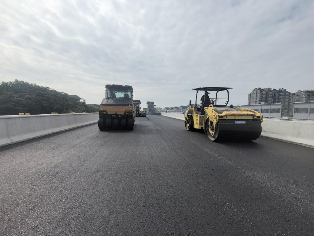 施工過程中,現(xiàn)場攤鋪機、壓路機等設備有序作業(yè),管理人員對原材料質量、攤鋪溫度、厚度及平整度進行嚴格控制,確保各項施工符合各項規(guī)范要求,為后續(xù)橋面交通標志標線施劃、智能交通監(jiān)控設施及亮化設備安裝打下基礎。