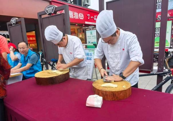 活動現(xiàn)場,來自城控集團下屬市民卡公司、揚州中燃、長江水務(wù)、供熱公司及名城公司的多支志愿服務(wù)隊早早準備就緒,通過設(shè)立咨詢臺、懸掛展板、發(fā)放宣傳冊和便民禮品等方式,為社區(qū)居民帶來了一場“零距離”的貼心服務(wù)。市民卡公司“e飛揚”志愿服務(wù)隊現(xiàn)場演示了市民卡充值、水氣線上繳費與過戶等操作,推動服務(wù)“掌上辦”;揚州中燃的志愿者們不僅發(fā)放安全手冊,講解用氣知識,更提供了免費的上門燃氣安檢服務(wù),筑牢安全防線;長江水務(wù)的工作人員耐心解答水壓、水費疑問,并為有需求的居民登記上門檢查,切實解決用水煩惱;供熱公司積極宣傳供暖知識與垃圾分類常識,倡導綠色生活;名城公司長樂客棧的廚師們則亮出絕活,現(xiàn)場免費切干絲,展現(xiàn)了“揚州工匠”的親民風采,將活動氣氛推向高潮。