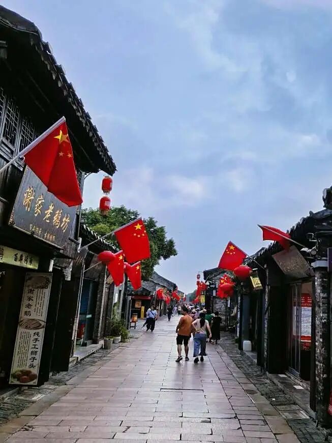 氛圍營造工程以紅動東關為主題,在沿街路燈桿、商鋪門前有序懸掛鮮艷五星紅旗。一面面紅旗與古街的歷史肌理交織,形成紅映古街、家國情長的喜慶畫卷,讓家國情懷浸潤每處角落。