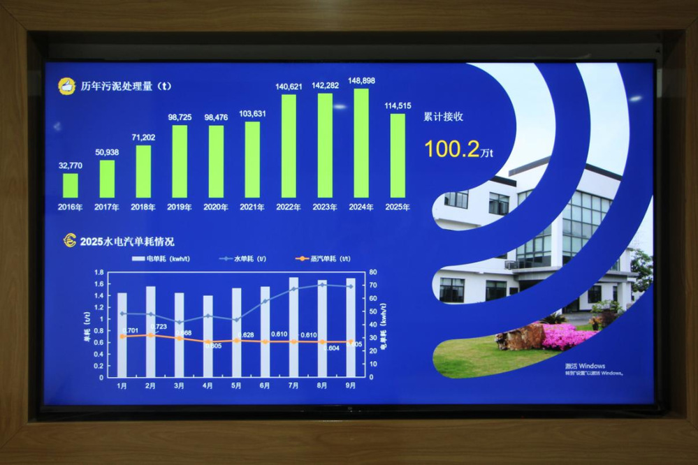 在工藝管控與環(huán)保達標層面,企業(yè)搭建全流程智能監(jiān)測體系:污泥進場時,通過自動采樣設備檢測金屬、有機物含量,杜絕不合格污泥入場;干化過程中,中控系統(tǒng)實時監(jiān)控溫度、濕度、蒸汽壓力等十余項關鍵參數(shù),偏差超限時自動報警調整,通過精細化管理,企業(yè)當前蒸汽單耗較設計值下降32%,用電單耗較設計值下降15%,均處于行業(yè)領先水平;尾水、廢氣排放均遠低于國家排放標準,十年來污染物排放合格率始終保持100%,真正實現(xiàn)“安全處置、環(huán)保達標、資源循環(huán)”的技術閉環(huán)。