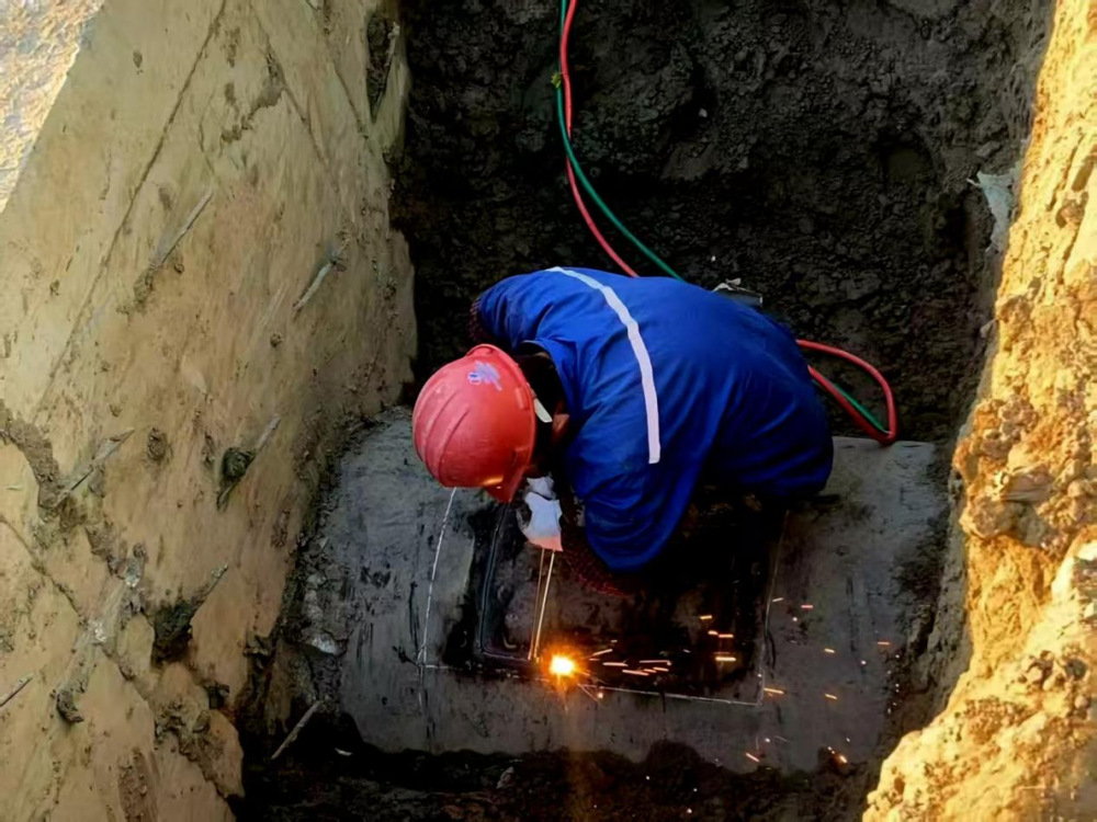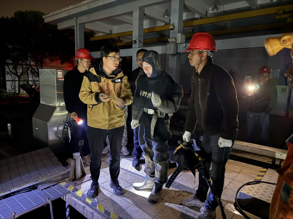 碰接施工正式開(kāi)始前,潔源公司再次開(kāi)展現(xiàn)場(chǎng)技術(shù)交底,除重申作業(yè)規(guī)范與安全準(zhǔn)則外,結(jié)合現(xiàn)場(chǎng)實(shí)際,對(duì)夜間照明布局、施工設(shè)備就位精度、周邊交通動(dòng)線規(guī)劃等細(xì)節(jié)進(jìn)行了最終確認(rèn)與動(dòng)態(tài)微調(diào),幫助各關(guān)鍵崗位人員對(duì)作業(yè)任務(wù)形成清晰統(tǒng)一共識(shí)。作業(yè)開(kāi)始后,各施工小組嚴(yán)格按照既定方案推進(jìn)工作,為搶抓夜間進(jìn)水量相對(duì)較低的窗口期,同步開(kāi)啟5個(gè)施工作業(yè)點(diǎn),各點(diǎn)位分工明確、銜接高效,施工過(guò)程井然有序,最終在19小時(shí)內(nèi)高效完成了管道碰接任務(wù)。