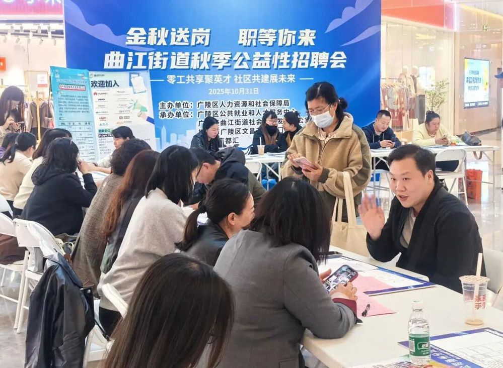 10月31日下午,嘉都匯商業(yè)鄰里中心聯(lián)合廣陵區(qū)人社局等部門(mén)共同支持的“金秋送崗 職等你來(lái)——零工共享聚英才 社區(qū)共建展未來(lái)”秋季公益性招聘會(huì),在一樓中庭圓滿落幕。