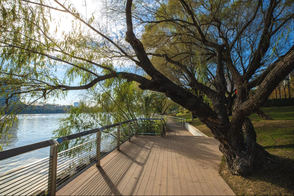 人們晨練、散步、休憩,