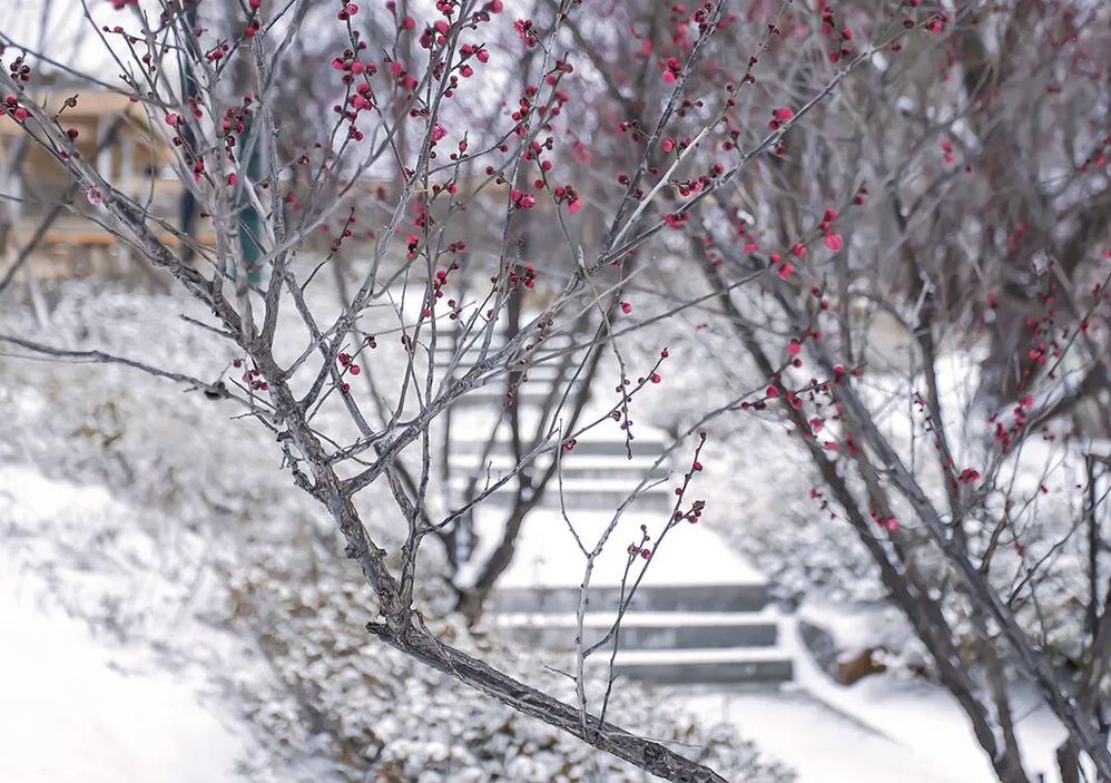 雪中紅梅點(diǎn)點(diǎn)
