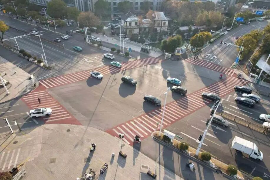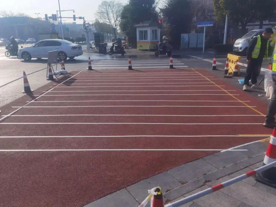 此次彩色路面與普通路面形成高對比視覺沖擊,通過視覺分區(qū),強化“行人優(yōu)先”的路權(quán)屬性,有效減少人車搶行沖突;表面的凹凸紋理使雨天的摩擦系數(shù)提升2-3倍,大幅降低濕滑路段交通事故發(fā)生率;采用環(huán)氧樹脂和陶瓷骨料復(fù)合材料,耐磨性強、抗老化性優(yōu),使用壽命遠超傳統(tǒng)標線,更具實用性與經(jīng)濟性,為揚州市民交通出行保駕護航。